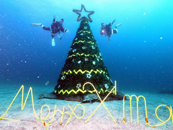 海中クリスマスツリーでの記念写真に多くのダイバーで賑わいます!!