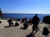 ダイビングの準備が出来、プールでの身体慣らしなどが終わりましたら、器材を持って海岸へ移動。エントリー付近でスクーバ器材のセッティングを行います。器材のセッティングが終わったら、潜水前のブリーフィング。ダイブドリームのファンダイビングは珍しい生き物だけにこだわらす、伊豆の海の生き物をゆっくりと紹介していきます。またフィッシュウォッチングだけでなく、生き物達の生態行動にも焦点を当てたダイビングで、伊豆の海中世界を面白おかしく紹介をしていきます。