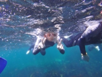 ウエットスーツの浮力があるから、身体は沈む心配はありません。水面から海底を覗くと驚くほど沢山の魚達が泳いでいる姿を見ることが出来るはずです。